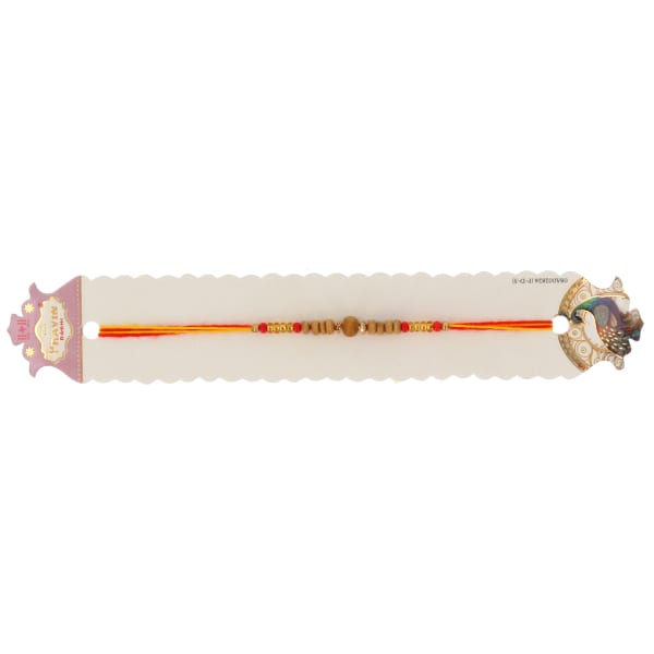 Rakhi Thread Bracelet Wooden Bead Raksha Bandhan Hindu Festival Wrist Band Dora On Card