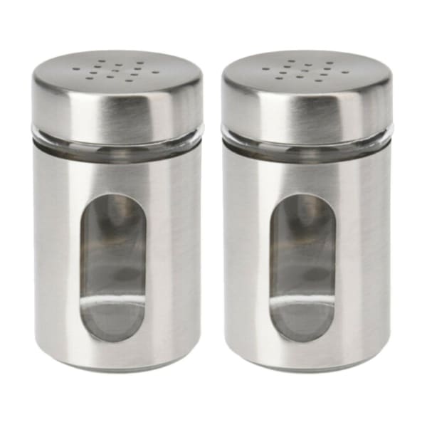 Salt and Pepper Shaker Pots Set Mini Stainless Steel Dispensers Storage Cruet x2