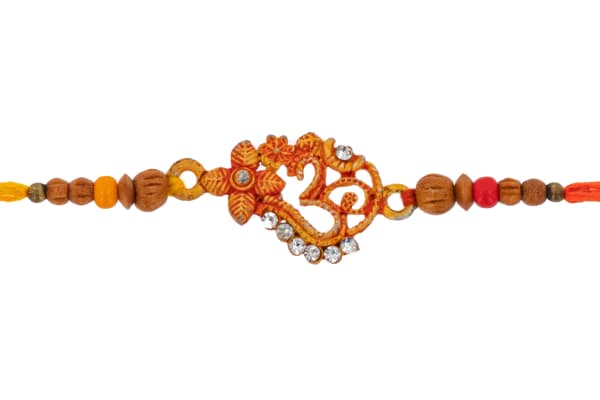 Rakhi Raksha Bandhan Single Om Aum Rakhri Rakhi Orange Yellow Gemstone Beaded