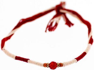 *Each Rakhi is sold individually. Price shown is for one Rakhi* Adorn your brothers’ wrist with this beautiful sacred thread of protection. Crafted with a Rudraksha centre, this captivating piece is adorned with beads on either side, it is threaded on a long & strong multi coloured cotton thread, allowing you to tie the perfect knot on the auspicious occasion of Raksha Bandhan. This will reinforce the close bond of love between siblings and create cherished memories! COTTON THREAD – Exclusive Raksha Bandhan Rakhi threads’ adorned with beads for your dear brother on the auspicious occasion. Cotton threads are soft and of long length for the perfect know on all wrist sizes. Please Note - As they are hand-made, colour or design may slightly vary from the photo. SHOW LOVE TO YOUR DEAR BROTHERS – Raksha Bandhan, the exclusive Hindu celebration that graces our lives once a year, dedicated to honouring the timeless bond that defines brotherhood and sisterhood. Indulge in the beauty of this exquisite cotton threads, known as "Rakhi," that uphold the rich Indian traditions symbolizing the unbreakable connection between siblings. KNOT OF PROTECTION - The word 'Raksha' means protection and the word ' Bandhan' means tie/bond. As this rakhi is tied, the sister offers heartfelt prayers for her brother happiness and prosperity, while, the brother in return gives her a token of gift and ensures he follows his religious duty and safeguards his beloved sister.