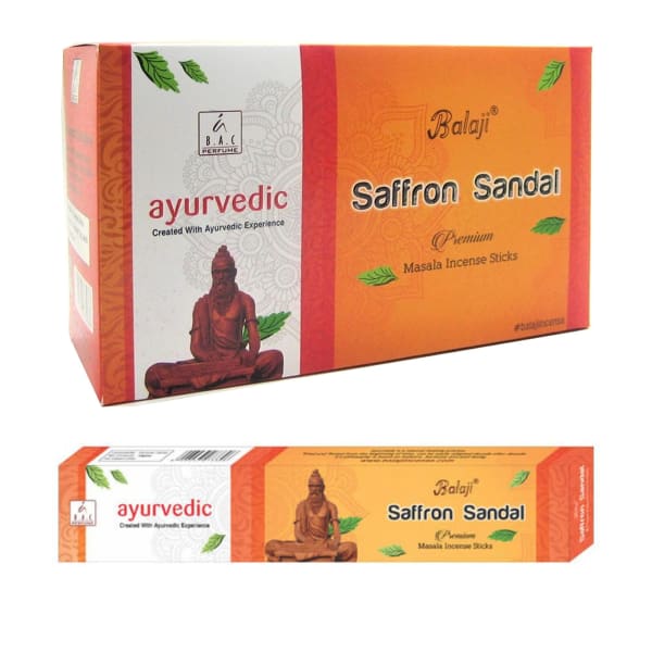 Balaji Saffron Sandal Incense Sticks Agarbatti 12 Pack x 15gm each Cultural and Spiritual Significance - Agarbatti plays a vital role in Indian traditions, commonly used during prayers, meditation, and religious ceremonies to create a sacred and peaceful environment. Made from Natural, Eco-Friendly Ingredients - Typically crafted from a blend of natural herbs, resins, wood powders, and essential oils, agarbattis offer a non-toxic and eco-conscious way to purify the air. Supports Mental Well-Being and Relaxation - The soothing aroma of agarbatti helps reduce stress, enhance focus, and promote a calming atmosphere ideal for mindfulness and spiritual practices.