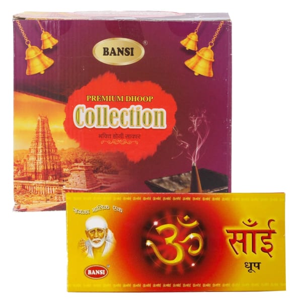 Bansi Om Sai Dhoop 12 Pack x 10 Sticks Cultural and Spiritual Significance - Dhoop sticks plays a vital role in Indian traditions, commonly used during prayers, meditation, and religious ceremonies to create a sacred and peaceful environment. Made from Natural, Eco-Friendly Ingredients - Typically crafted from a blend of natural herbs, resins, wood powders, and essential oils, dhoop sticks offer a non-toxic and eco-conscious way to purify the air. Supports Mental Well-Being and Relaxation - The soothing aroma of dhoop sticks helps reduce stress, enhance focus, and promote a calming atmosphere ideal for mindfulness and spiritual practices.