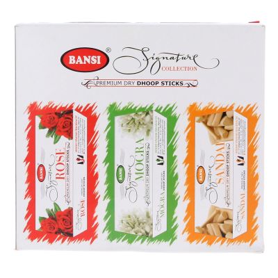 Bansi Signature Dhoop Stick Sandal 12 Pack x 10 Sticks Cultural and Spiritual Significance - Dhoop sticks plays a vital role in Indian traditions, commonly used during prayers, meditation, and religious ceremonies to create a sacred and peaceful environment. Made from Natural, Eco-Friendly Ingredients - Typically crafted from a blend of natural herbs, resins, wood powders, and essential oils, dhoop sticks offer a non-toxic and eco-conscious way to purify the air. Supports Mental Well-Being and Relaxation - The soothing aroma of dhoop sticks helps reduce stress, enhance focus, and promote a calming atmosphere ideal for mindfulness and spiritual practices.