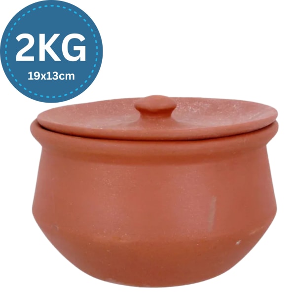 Dimensions of this Clay Handi Serving Casserole are - 2KG (Diameter: 19cm & Height: 13cm).