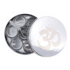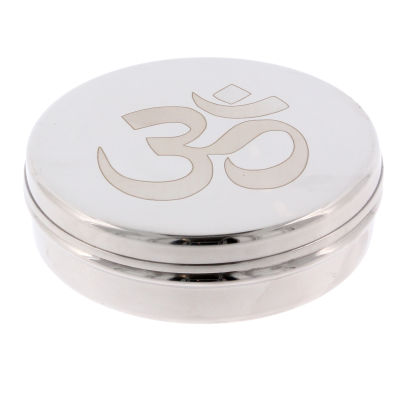 MINI POOJA BOX - Look into this finely crafted Stainless Steel Pooja Box, a mini meticulously designed haven for your spiritual necessities. This elegant box is adorned with a laser traditional aum/om symbol design lid to stand as the perfect storage tool for your sacred rituals.