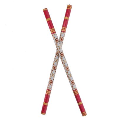 Be ready for everyone’s favourite 9 day celebration Navratri! Hand-crafted from wood is this pair of Dandiya Sticks in traditional floral dot patterns and modern colours, for you to play and enjoy Gujarati Raas Garba during the nine nights of Navratri as you worship Goddess Ambe Maa/Durga Maa.