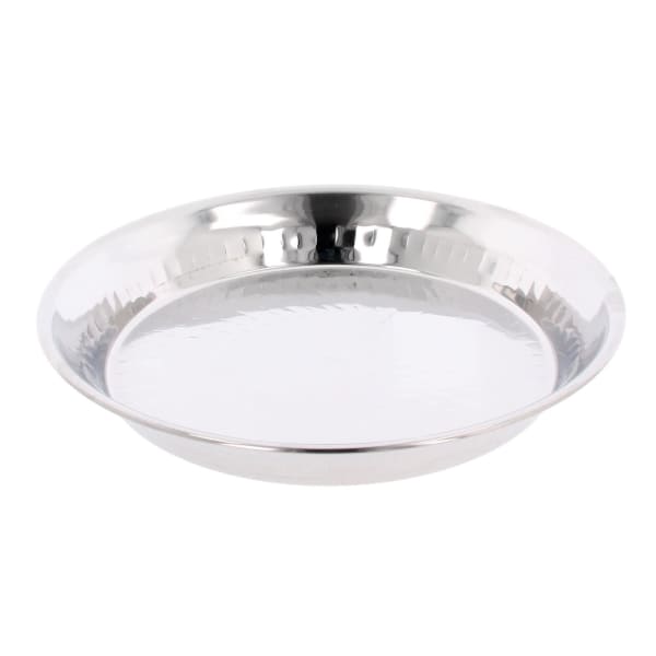 A traditional mixing and kneading tool. Crafted from high quality mirror polished stainless steel with lined pattern is this large kneading bowl known as a "Parat" in the Indian culture. It has a shallow yet wide plate style structure with a flat base specially designed for mixing flours and kneading doughs for chapatis, flatbreads and more.